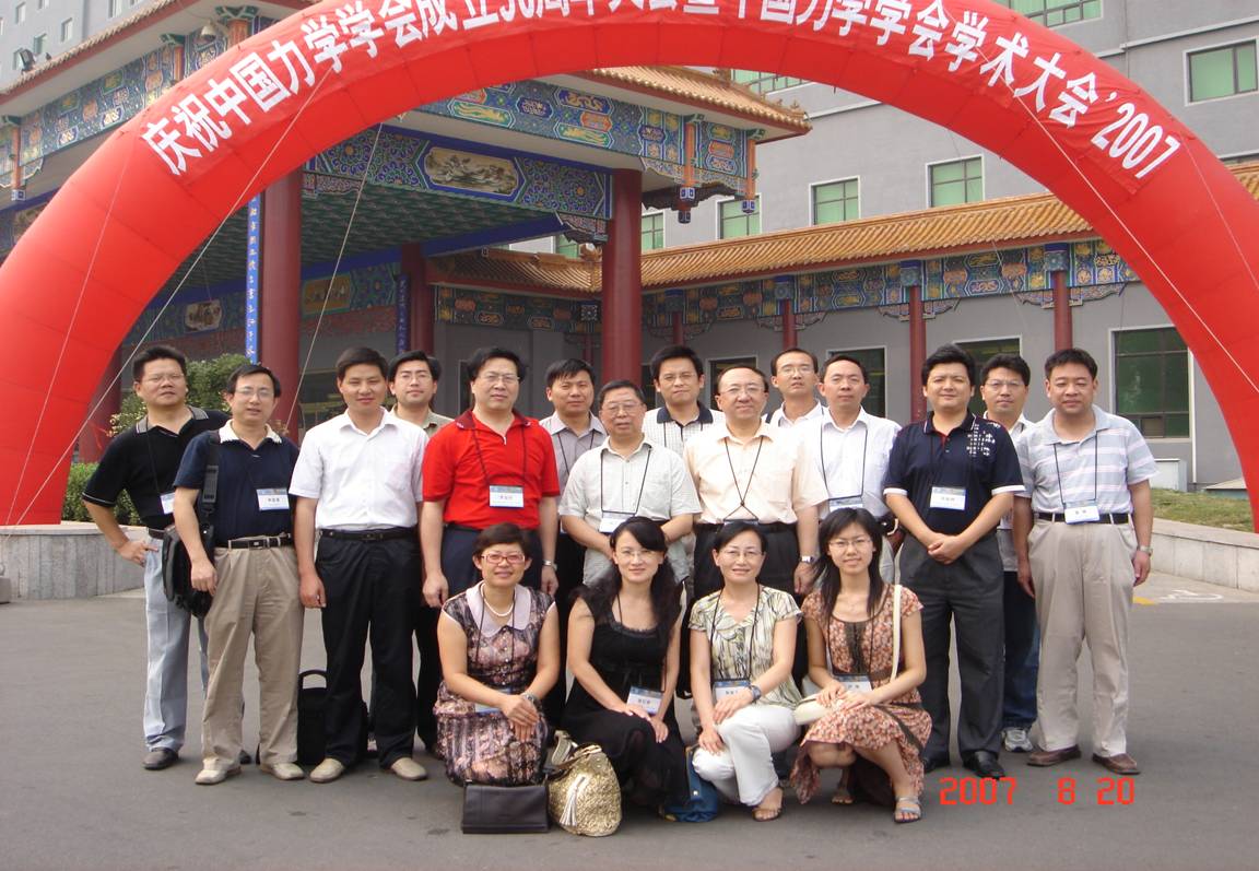 2007年8月19~22日在北京九华山庄,由中国科学技术协会和国家自然科学基金委员会指导,中国力学学会主办、40家高校和科研院所协办的“庆祝中国力学学会成立50周年大会暨中国力学学会学术大会‘2007”成功召开。国务委员陈至立、全国人大副委员长兼中国科协主席韩启德、全国人大副委员长兼中国科学院院长路甬祥、全国政协副主席中国工程院院长徐匡迪、国家科技部部长万钢给中国力学学会发来贺信,历任理事长钱学森、钱令希、郑哲敏、庄逢甘、白以龙、崔尔杰院士和现任理事长李家春院士为学会题写了贺词,开幕式上中国科协党组成员苑郑民先生代表中国科协、国家自然科学基金委数理学部常务副主任汲培文先生代表基金委、两院院士郑哲敏先生代表力学界、L.B. Freund代表国际理论与应用力学联盟致词。大会交流论文1300余篇,设立1个主会场、15个分会场、47个专题研讨会会场,到会人数超过1500人,其中包括30多位科学院和工程院院士,30多位大学校长和副校长。大会还邀请到国际理论与应用力学联盟(IUTAM, The International Union of Theoretical and Applied Mechanics)主席、秘书长及执行局全体执委、国际科学联合会(ICSU,The International Council for Science )亚太主任、亚洲主要国家的力学界代表参加会议。这是我国力学界一次具有历史意义的盛会,也是中国力学学会迈向未来的新起点。